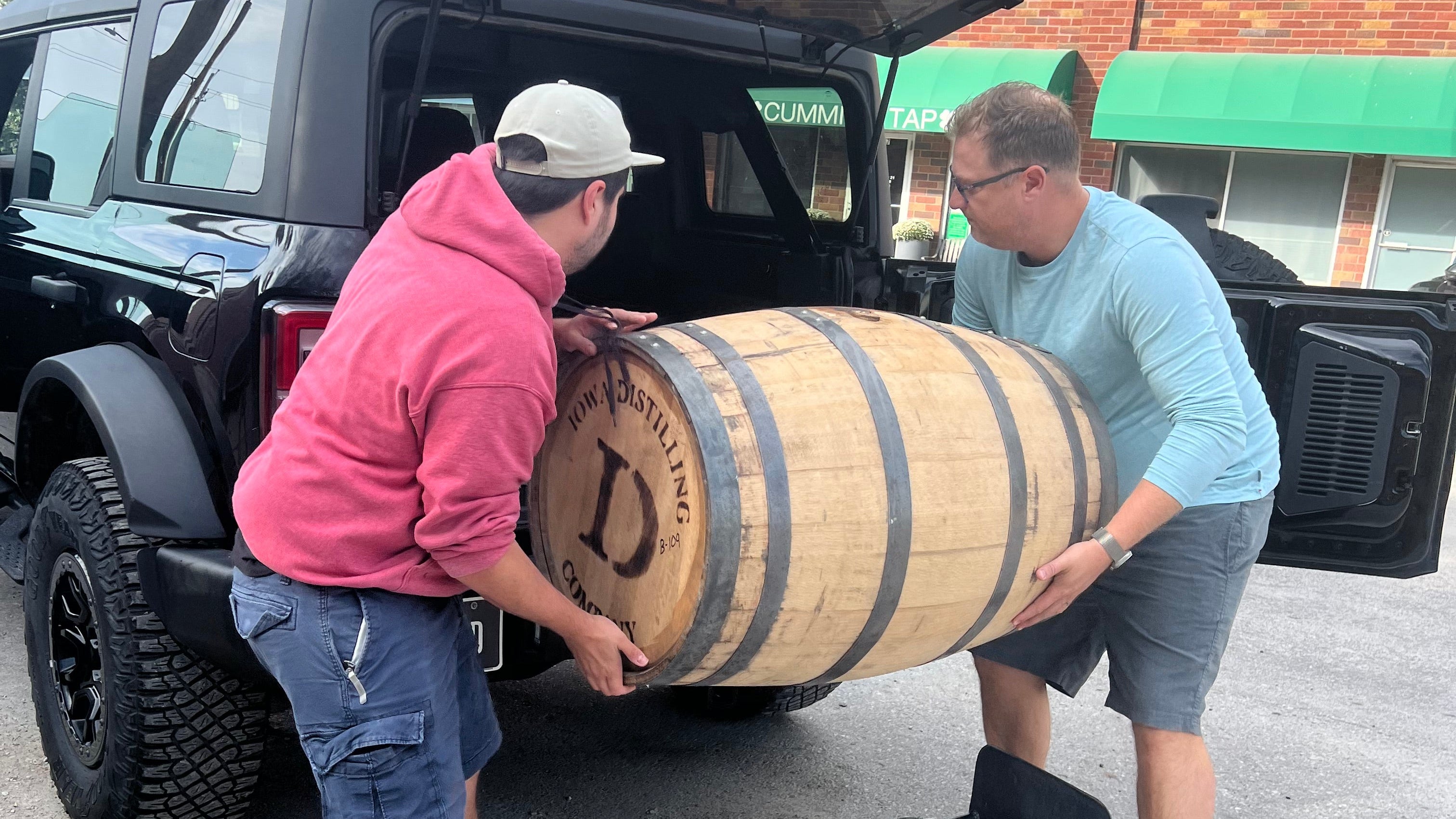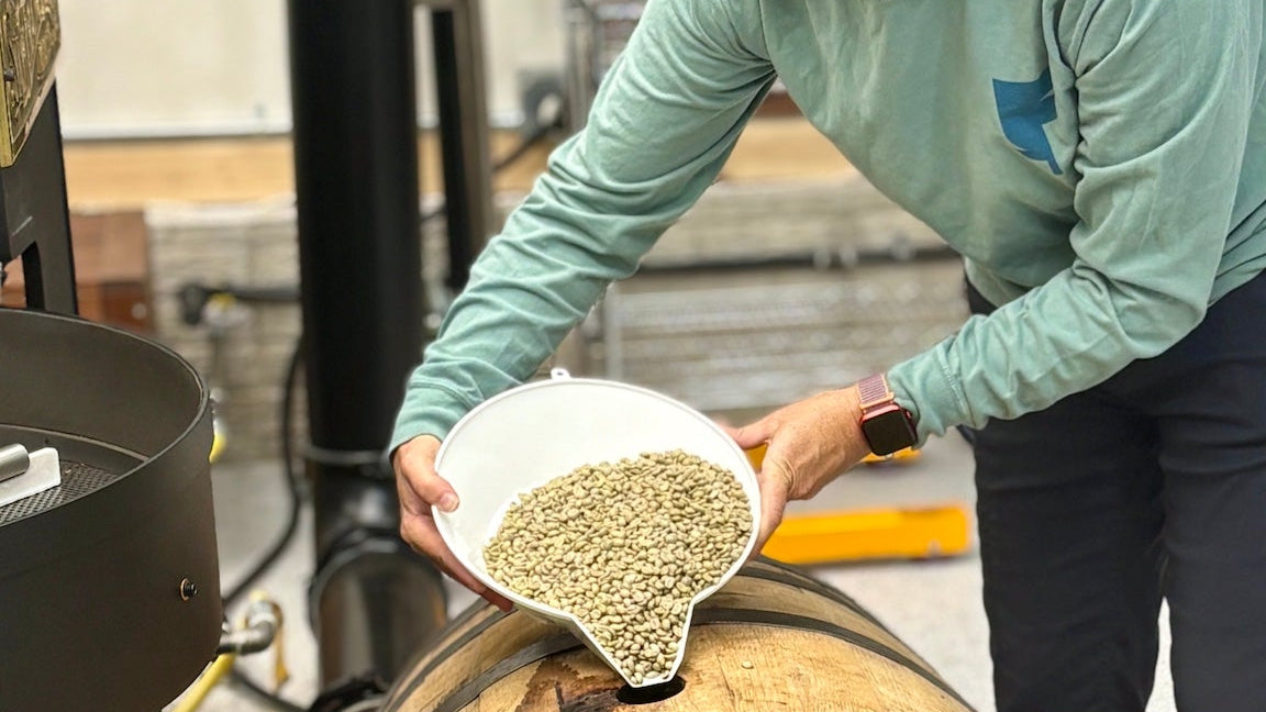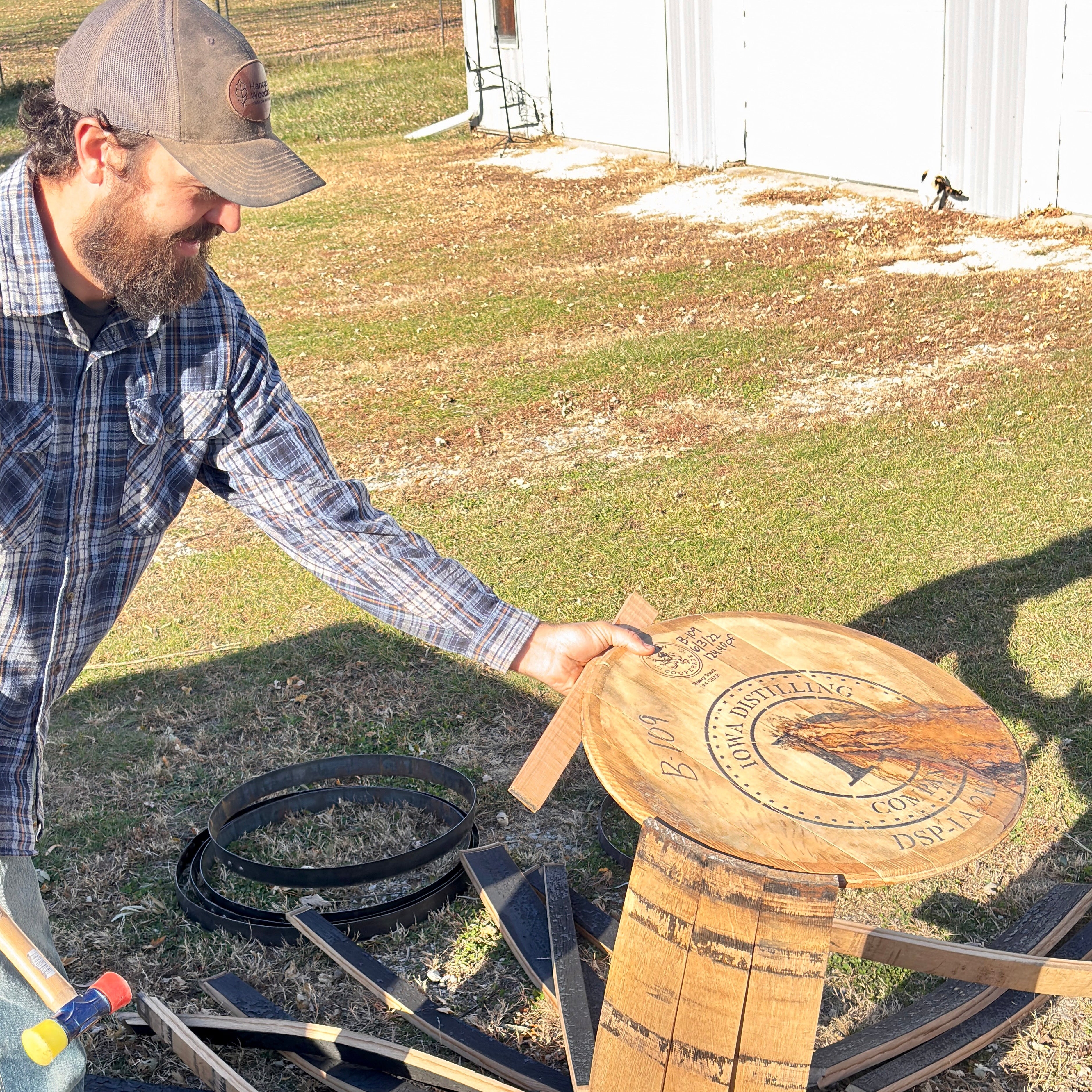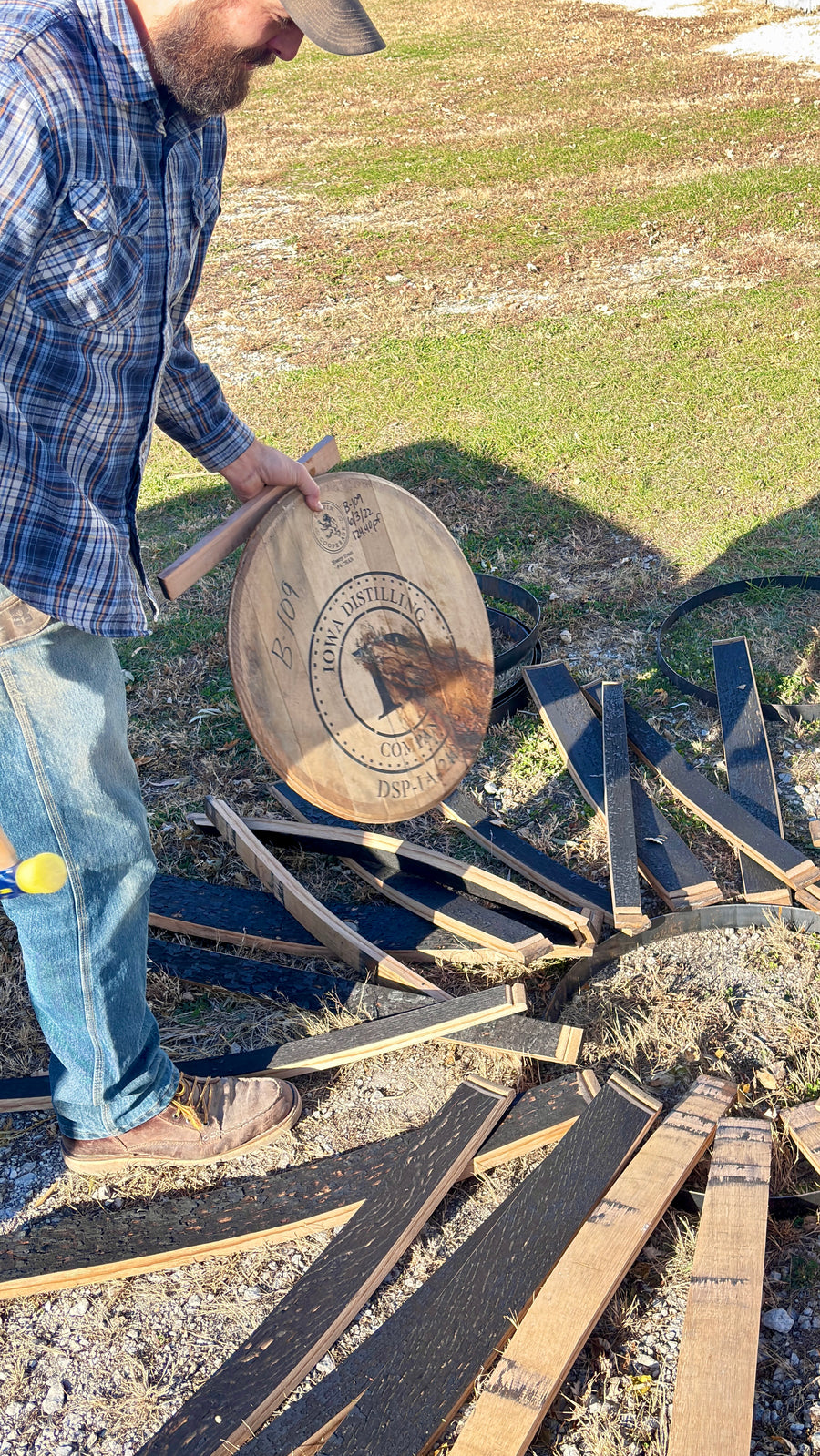 Organic Colombian Tolima, aged in an Iowa Distilling Co. whiskey cask barrel - a three-maker craft between FreeBird, Iowa Distilling, and Hancock Woodworks.