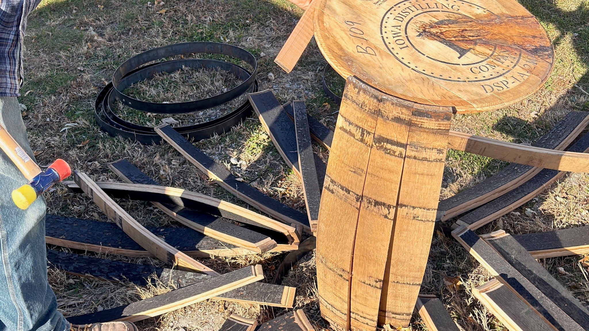 After aging Iowa Distilling Co. whiskey and lending character to FreeBird’s limited barrel-aged Colombian Tolima, the staves from one special cask were transformed by Hancock Woodwork into a single handcrafted whiskey-stave chair.